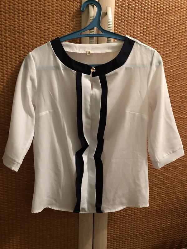 Блуза белая с синими полосками Ог 45 длина 54