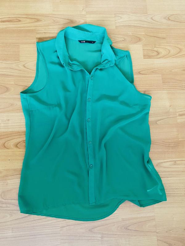 Блуза на пуговицах, шифон, цвет очень красивый, ярко-зеленый, камера не передает но последняя фото почти точно напоминает оригинал