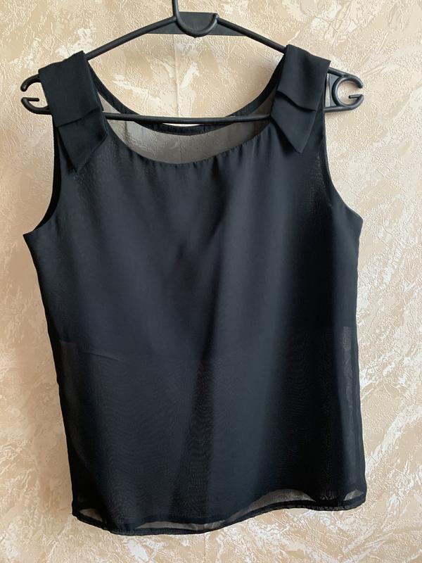Літня блузка з чорного шифону. Спереду пот грудях (до середини довжини) шифон подвійний. Купувала в ЛєБутік. Бренд MS (Україна.). Заміри: довжина від плеча - 60 см., ширина - 48 см.