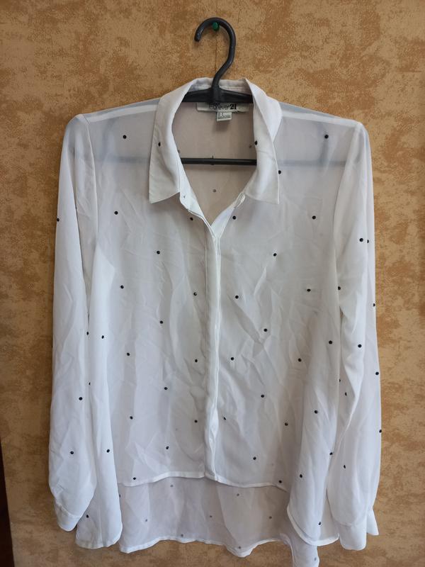 Блузка в горошек в отличном состоянии без дефектов размер 44-46. Длина сзади 77 Перед 56 Рукав 59 ПОГ 48