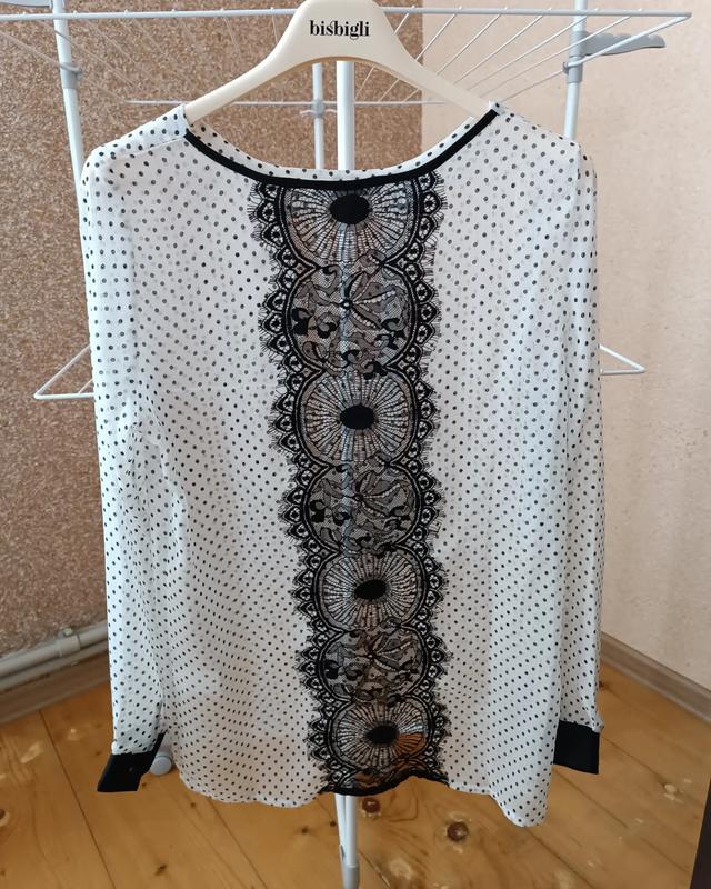 🌱🌿🌾Блузка🌾🌿🌱 🔸 Тканина: шифон. 🔸 Цвет: белый. Принт: горошок. Посередине кружево. 🔸 Размер: М(38-40). Может быть на маленькую L. Цена:💙💛220грн.