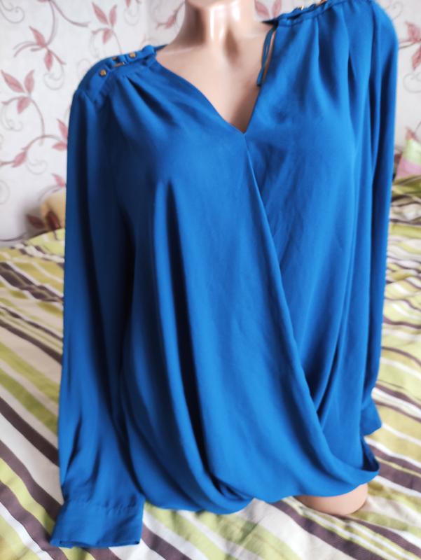 Красивая легкая блузочка насыщенного синего цвета.Воленного кроя на запах, укроет животик и подчеркнет грудь,размер 50-52 точные замеры по запросу.