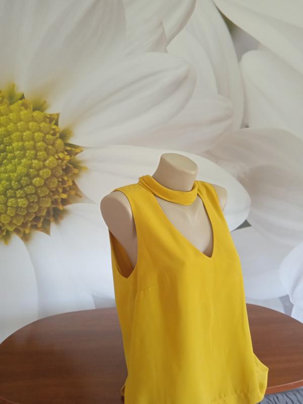 Классическая однотонная блузочка без рукавов насыщенно желтого цвета. Легкая и комфортная. Приятная на ощупь. Двойной шифон. Не просвечивается. Практически не тянется. Ложится свободно. Фасон-легкая трапеция. Интересный, аккуратный вырез. Декольте по мере. Есть размеры.