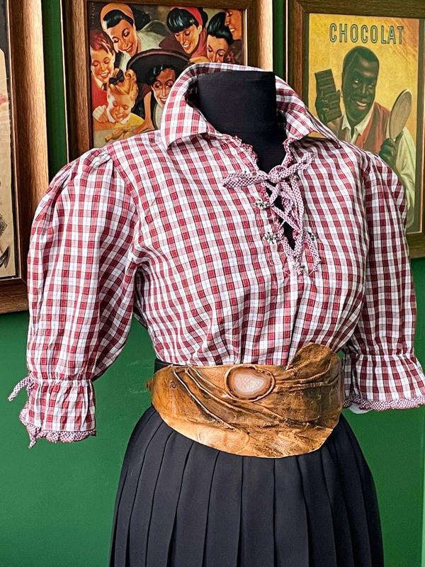 Блуза австрийская винтажная хлопковая на шнуровке в клетку