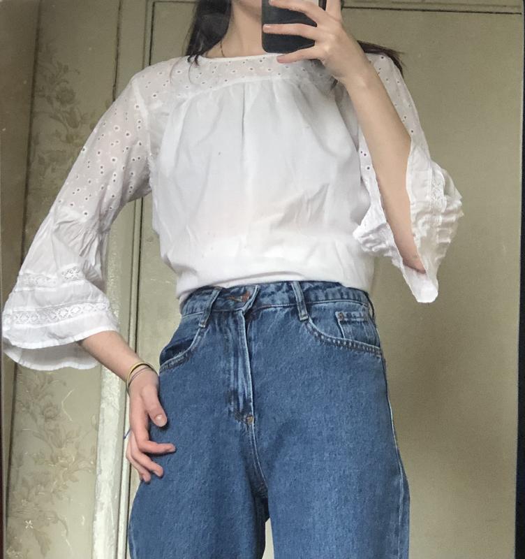 блуза в хорошем состоянии, без недостатков, рукава фонарики (если хорошо разгладить будут выглядеть очень красиво), размер М, длина рукавов 45 сантиметров, полуобхват груди 56 сантиметров, длина всей блузы 65 сантиметров, бренд amisu, материал 100% хлопок.