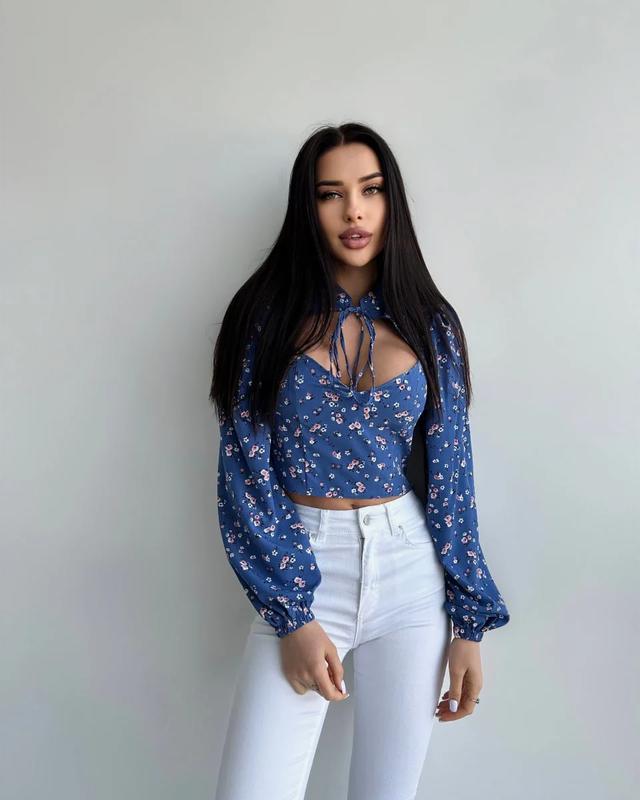 🌸Блуза Тканина: Софт принт Размеры: 42-44, 46-48 Цвета: Джинс принт, Темно-синий принт