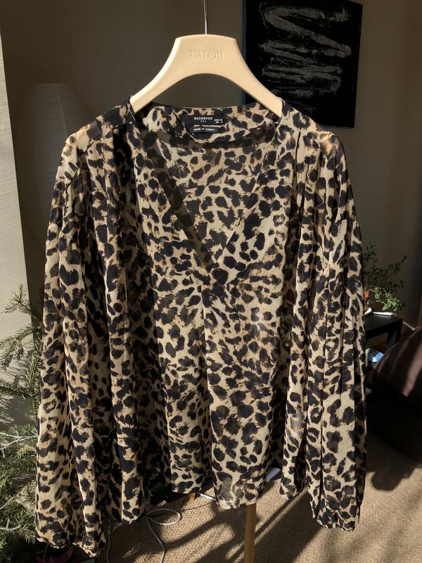 Леопардова блуза Reserved Просвечивается! Состояние 5 (носителя, но в хорошем состоянии) Рукава на резинке V-образный вырез Состав: 100% полиэстер Размер 36