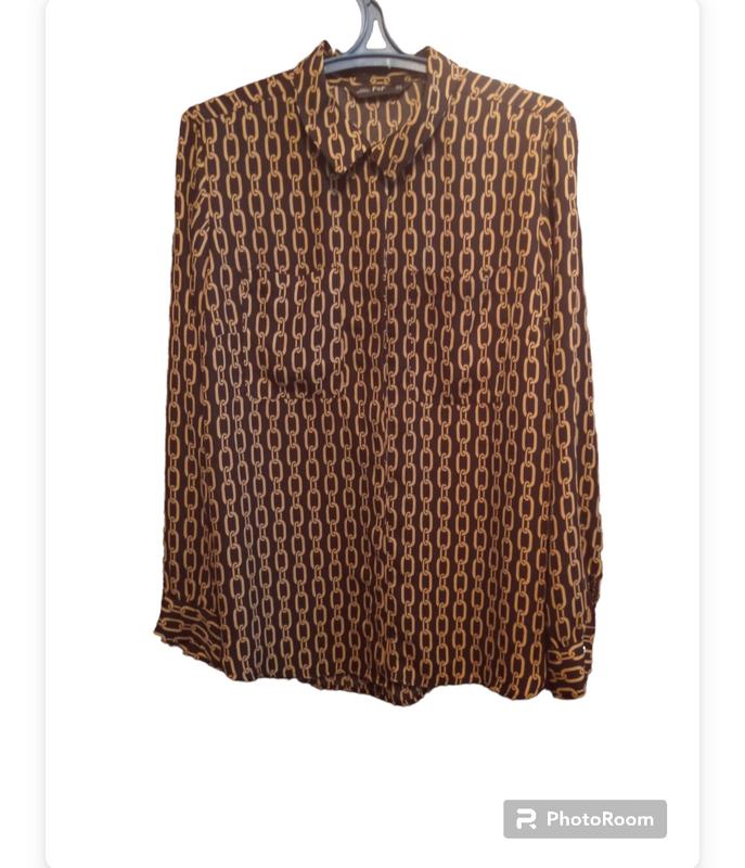 Стильная блуза. состояние идеальное. Вискоза. интересный принт - цепочки. отрезное по спине, драперовка сборкой плечи - 40 Пог- 58 длина -66
