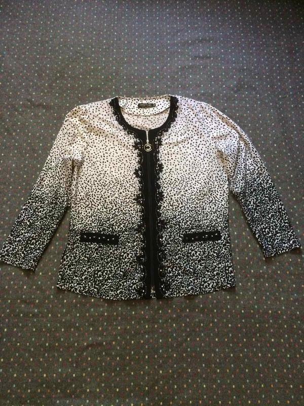 плечи 42 см объем груди 57 ×2 длина рукава 56 см длина по спине 68 см ткань эластичная мягкая. впереди на молнии. написан размер 56 впереди красивые камни состав. 35 % полиэстер 65 % вискоза