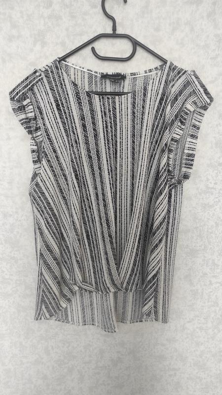 Літня блуза в дуже гарному стані Розмір вказано 12 (46р.) ПОГ 53 см тягнеться до 56 см Довжина спереду 54 см Довжина позаду 64 см Плечі 44-46 см
