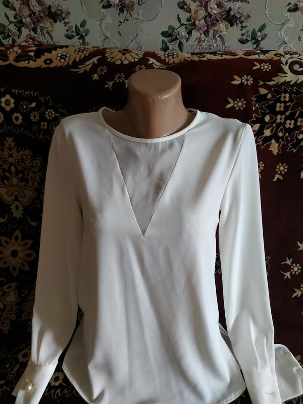 Очень нарядная блузка молочного цвета.Пог-44, длина рукава -59, длина -58