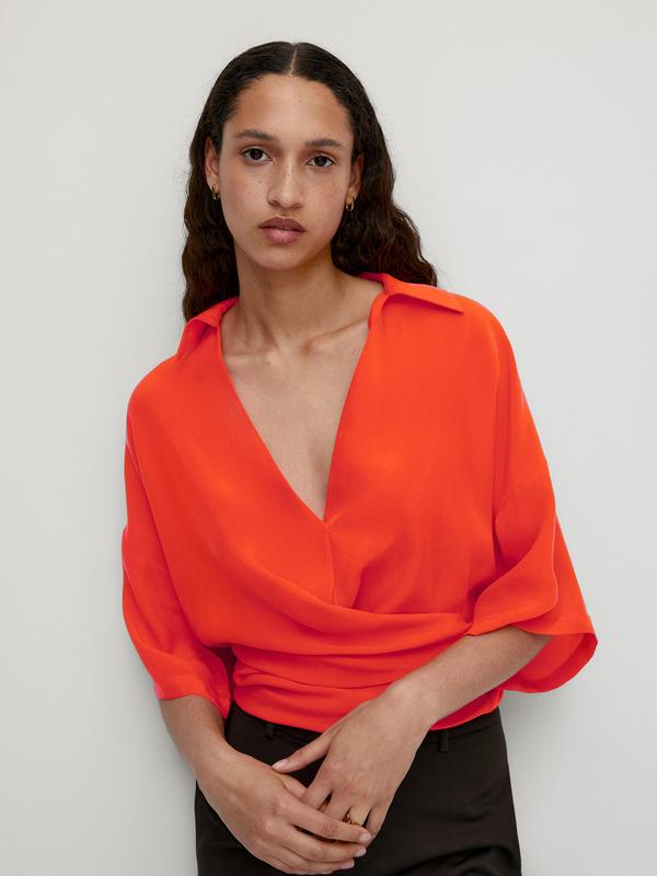 Размер М, состав 100% вискоза, сочного оранжевого цвета, ткань очень красиво строгится как настоящий шелк свободный крой, идет немного оверсайз, поэтому подойдет как на М так и на Л