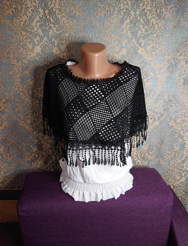 Красивая женская блузочка с кружевной накидкой, состояние идеальное, ткань хлопок Размер наш 44 /46 Замеры Длина ок 64 Пог 45 тянется 53