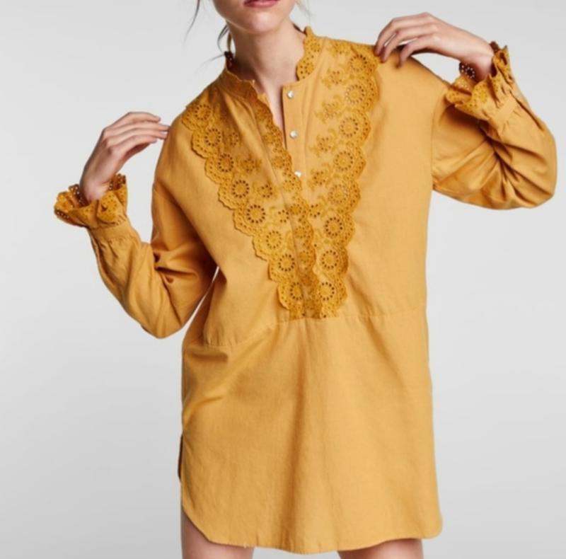 Льняная удлиненная блуза з декоративной вышивкой туника платье от zara с смешанного льна