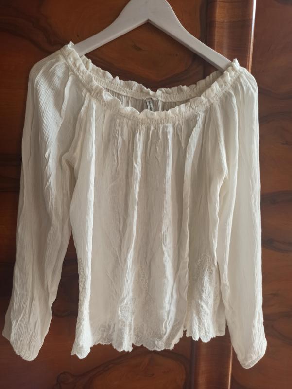с открытыми плечами, с вышивкой, длинный рукав на резинке