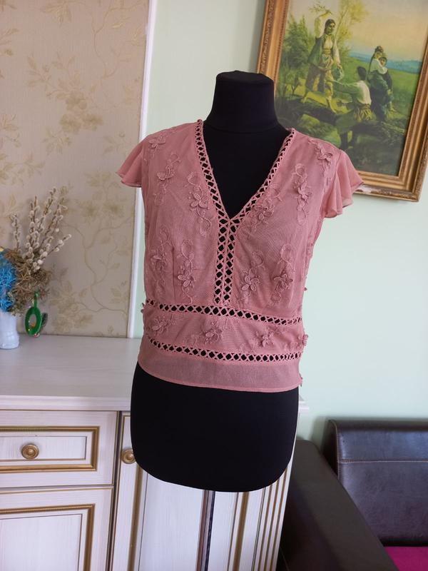 нарядная укороченная блуза цвета капучино, спереди вышивка, со стороны молния, для удобства, в идеальном состоянии, р-р 12. длина 47, ПОГ 46 талия 40