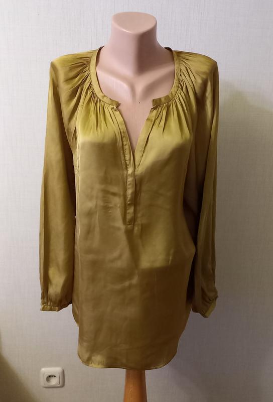 Продам атласную блузу indigo collection, золотистого цвета, 100% полиэстер, отличного качества в идеальном состоянии без дефектов. ПОГ 63 см, ПОБ 66 см, Рукав реглан от ШИИ 72 см, Длина 70 см.