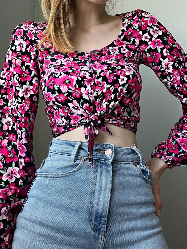 Милая укороченная кофточка на пуговицы и завязки, с рукавами-буфами (объемные) в цветочный принт. Очень сочно лежит по фигуре. Размер XS, подойдет на S. На меня стала маленькой в объеме груди. Стан идеален, 10/10, одевалась только на фотосессию.