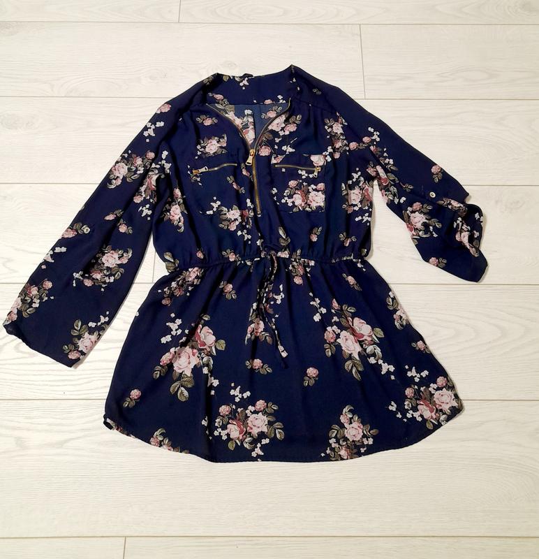 Блузка женская с цветочным принтом, рукав регулируется, шифон темно-синий. Состояние новой.