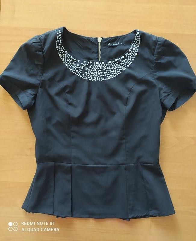 Блуза, сзади застегивается на молнии, размер S длина 53 см, полуобхват груди 43 см, Полуобхват талии 37 см,плечи 34 см