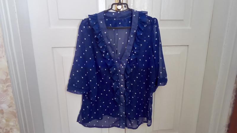 Блуза якісного пошиття. Тканина - шифон. ПОГ 54, ПІТ 49, НИЗ 55, довжина 62 см, ширина в плечах 40., по боках невеликі розрізи .