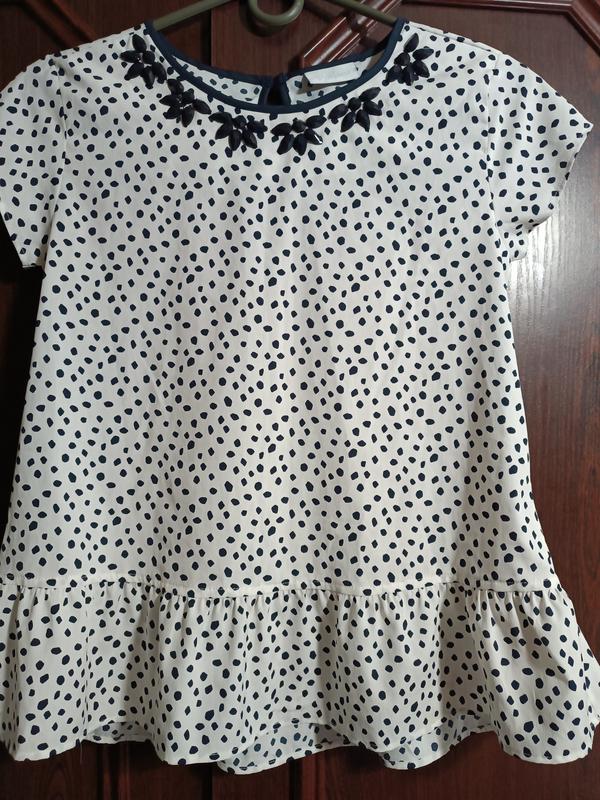 маленький рукавчик по низу при собран валан застежка на маленькой пуговичке розмер M-L