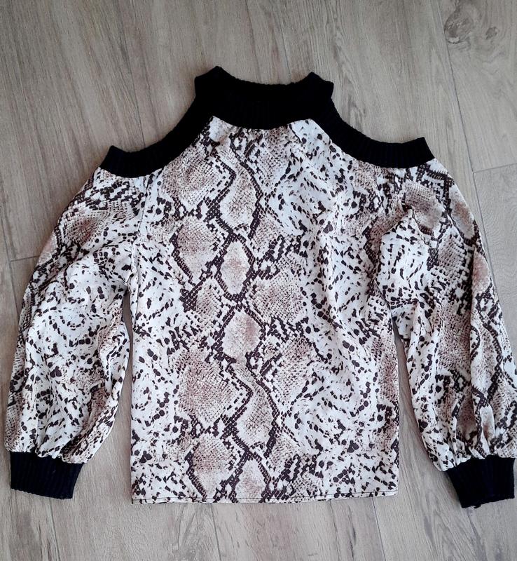 очень интересный дизайн блузы, где черное там вязаное, открытые плечи, легкая ткань размер М