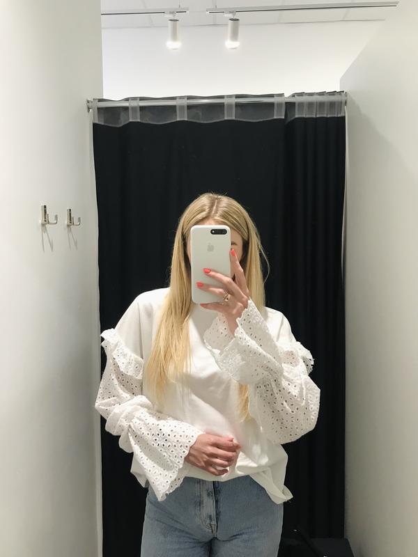 Блузка белого цвета, очень стильная,рукав из прошвы,производитель Турция,размер в наличии M,L