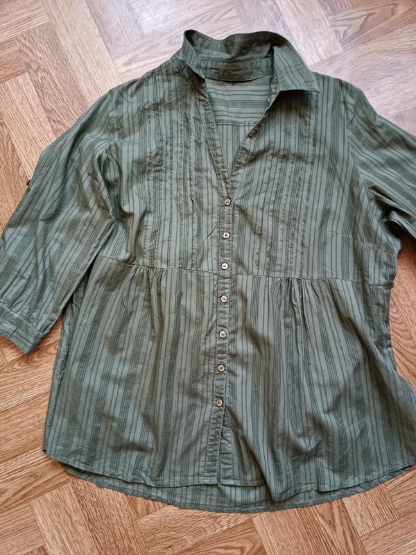 блуза женская,хаки, коттон,рукав 3/4, фиксируется, пог63, пос66,рукав45, длин.72.