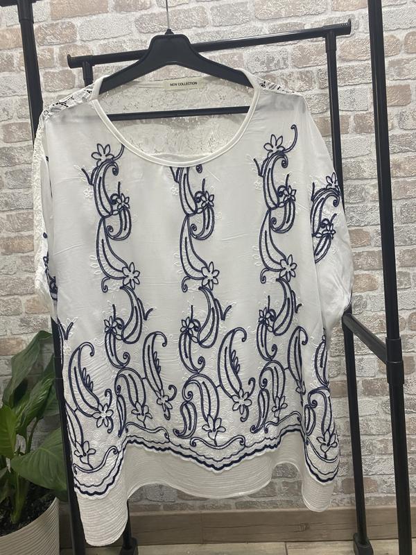 Легкая вышитая блузка, Италия, в хорошем состоянии и качестве, с кружевом, длина -70см, ог-75(150)см, ос-77(154)см.