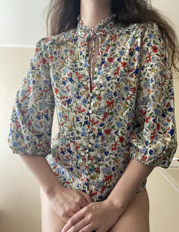 Очень красивая блуза, в цветочный принт, на шее завязывается бантик Размер S