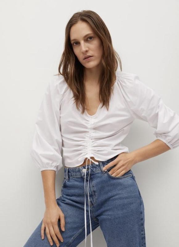 100% бавовна, бавовняна поплінова тканина, V-подібний виріз в наявності XS колір білосніжний легенька, на манжетах резиночки Трохи просвічує