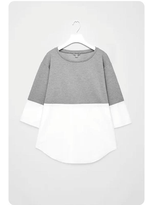 Блуза серо-белая, рукав 3/4, состояние идеально. Пог. 49, рукав 37, длина 66.