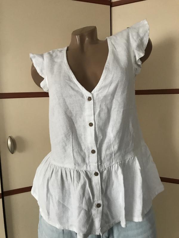 Блузка,размер S-M(указанный 6R)длина 59см,пог 46см,пот 44см,состав 55%лен и 45% вискозы.
