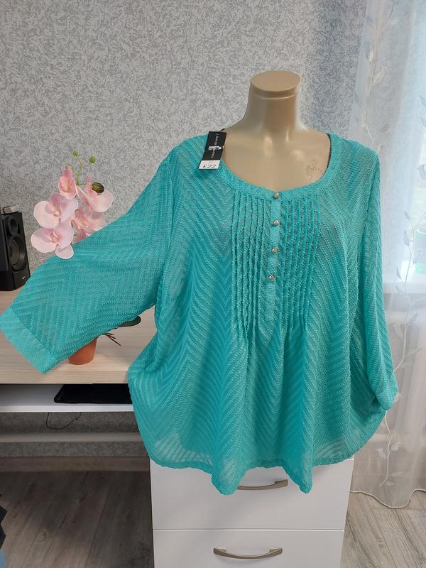 Блуза женская из полиэстра, с подкладкой, размером 22,50-52,бирюзовая. Новая с этикеткой, тянется только подкладка. Все замеры на фото. Маде и др China.