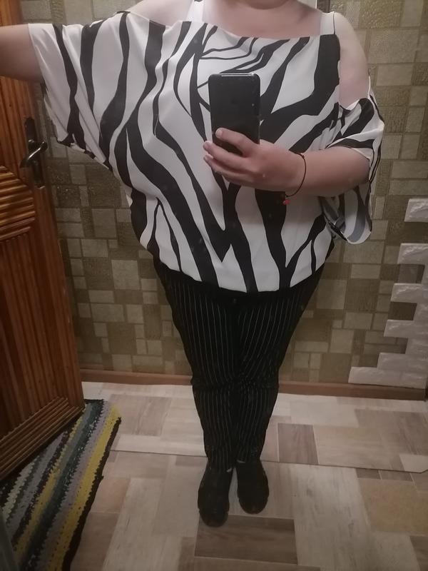 Добрий день Рада вітати Вас на своїй сторінці Всі речі в хорошому стані Ошатна блузочка, фасон летюча миша з оголеними плечима, є подкладка майка, низ - резинка Плече (від горловини перехід в рукав) 46 см Довжина 56 см Ширина резинки полуоб'єм 46 - 63 см НА півоб'єм грудей від пройми до пройми 67 Фото на мені в мене 22-24 розмір Купляєте те що на фото без претензій Перед покупкой все хорошо заміряйте, обміну та повернення немає Доставка НП та УП після оплати на картку