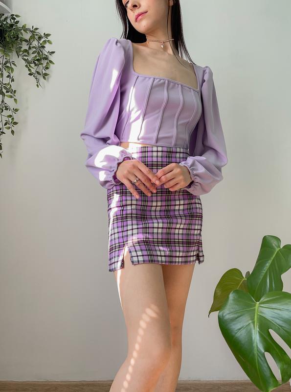 Ніжна блуза лавандового відтінку 🦄 У корсетному стилі з об’ємними рукавами 💗 Манжети на резинці Тканина щільна, чудово тягнеться Розмір по бірці: eur 38 / S Заміри у спокійному стані: Півобхват грудей: 43 Півобхват талії (по низу): 34 Довжина рукава: 62 Довжина: 37 Стан нового