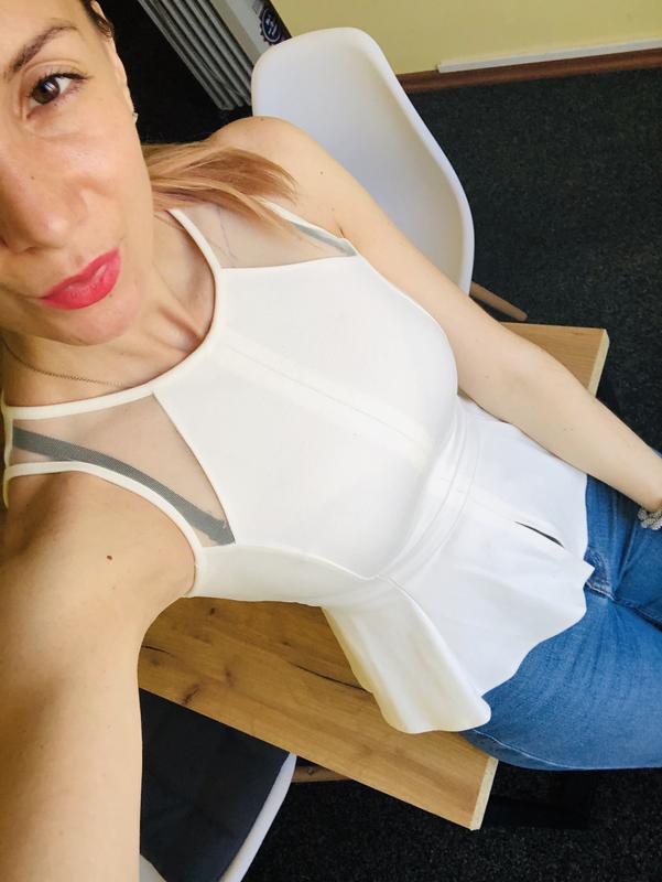 Топ adL выполнен из плотного трикотажа. Детали: приталенный крой; сзади потайная молния; сетчатая вставка. Длина 51см