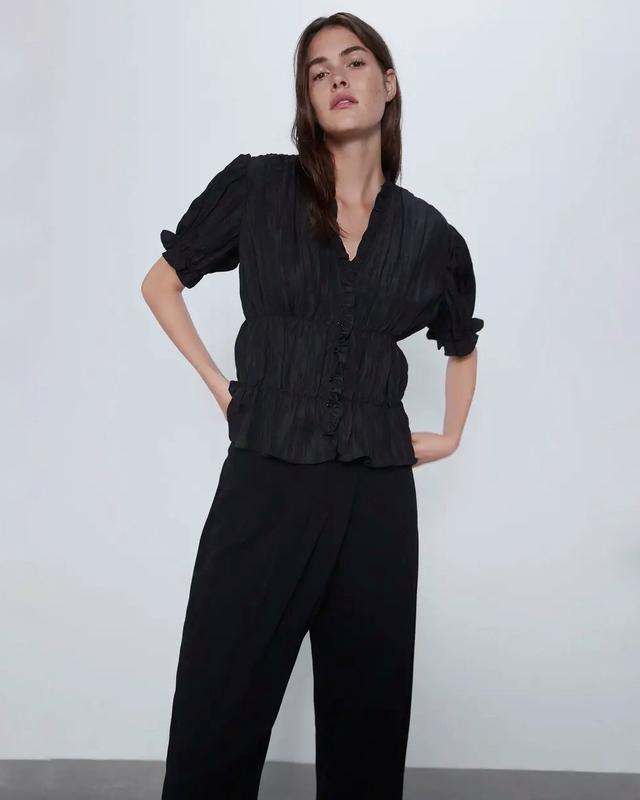 Чорна блуза ZARA з простроченими резинками Тканина поліестер Розмір XL Довжина 69 см, плечі 40 см, пог 51-68 см