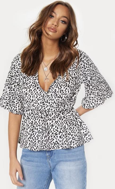 Блуза на запах з леопардовим принтом prettylittlething plt 🛍️1+1=3🛍️