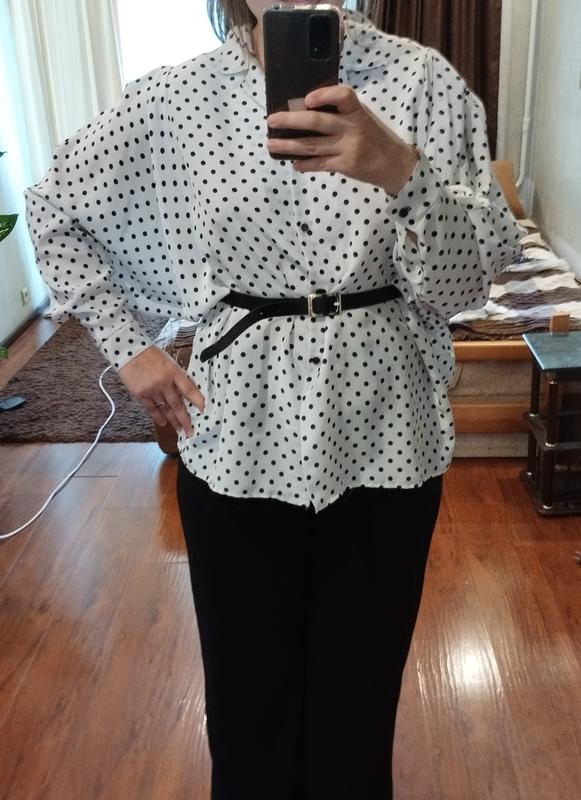 Свободная белая блуза в синюю точку в стиле ретро