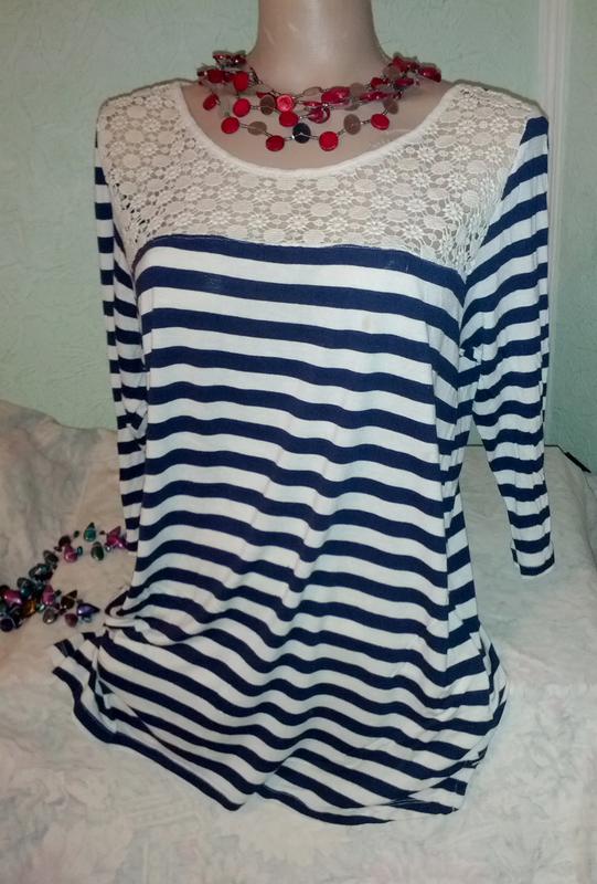 Тоненький свитшот в морском стиле с кружевной кокеткой,50-54разм.janina,италия.