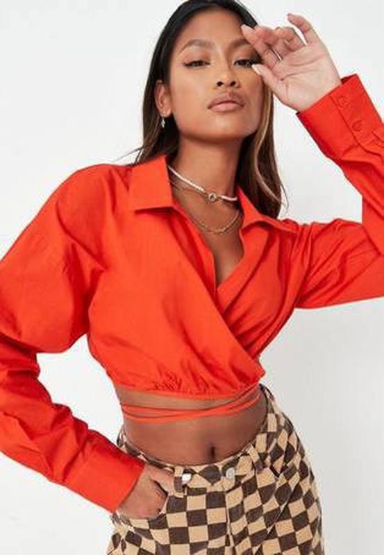 укороченная блуза ярко оранжевого цвета, переливается вокруг талии