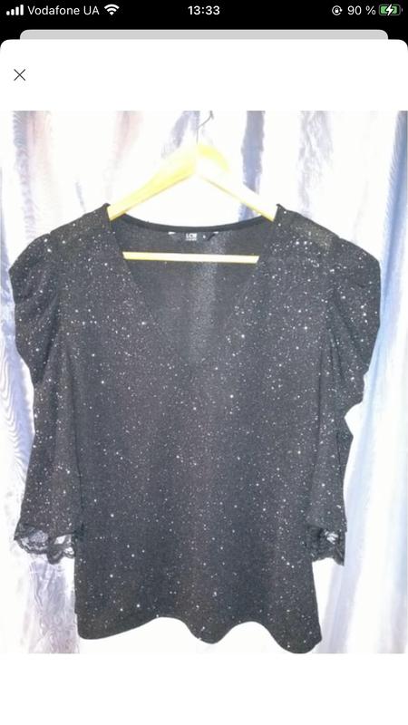 Нарядная кофточка.Колир насыщено черный камера непередает.Замеры: длина 59см,грудь 41см,плечи 39см,рукав 42см,.