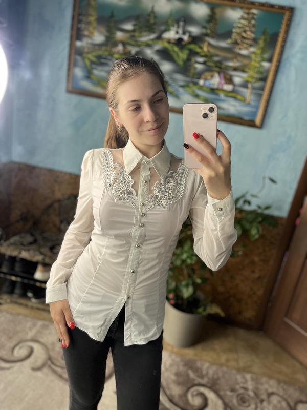 Блузка школьная или на праздник. Ткань хорошо тянется. Все камушки присутствуют, сзади хорошо вышита. Удлиненная (можно укоротить). Есть плечики для красивой и ровной спинки