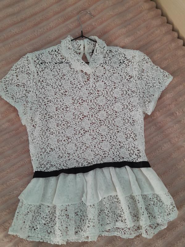 Великолепная ажурная блуза, может быть к классическим брюкам, красиво подчеркивает талию. Размер 38, может быть S или M (небольшой), так как кружево не тянется. Сбоку замочек, чтобы удобно надевать. Одетая 1 раз. Стан - идеальный.