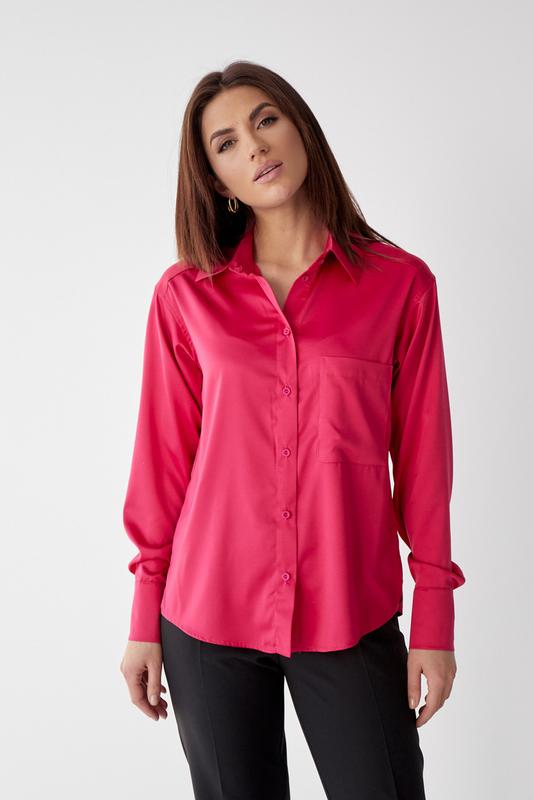 Сорочка вільного крою із сорочковим коміром. Лінія плеча приспущена. Рукава втачні, довгі, закінчуються манжетами і застібаються на гудзики. Пілочка та спинка виконані з кокеткою. Плечового шва немає. Спинка із зустрічною складкою. Пілочка з однією кишенею та планкою на ґудзиках. По бічних швах – розрізи. Оздоблювальну строчку прокладено по кокетці, проймі рукавів, по планці, на кишені та по низу виробу. Замовлення можна оформити через Вайбер Найбільший асортимент якісного жіночого одягу на нашому сайті ********** Розмір підбирайте відповідно таблиці: (також обов'язково враховуйте заміри виробу, що вказані в характеристиках товару)
