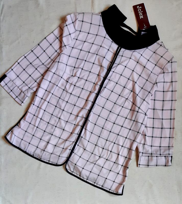 Нарядная легкая вискозная блуза Jolex Польша розовая в черную клетку размер XXXL ЗАМЕРЫ длина от плеча 67,5см, ПОГ 55см, рукав 47см, плечи 46см