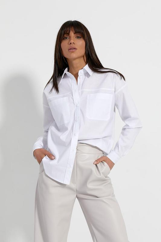 Котонова сорочка із нагрудними кишенями. Застібка на планку із гудзиками. Пілочка і спинка із кокетками. По середині спинки зустрічна складка. Комір сорочкового типу. Рукава з приспущеною лінією плеча. Рукава вшивні, довгі, із манжетом. Оздоблювальні строчки прокладені по кокетках, кишенях, манжетах і по низу виробу. Замовлення можна оформити через Вайбер Найбільший асортимент якісного жіночого одягу на нашому сайті ********** Розмір підбирайте відповідно таблиці: (також обов'язково враховуйте заміри виробу, що вказані в характеристиках товару)