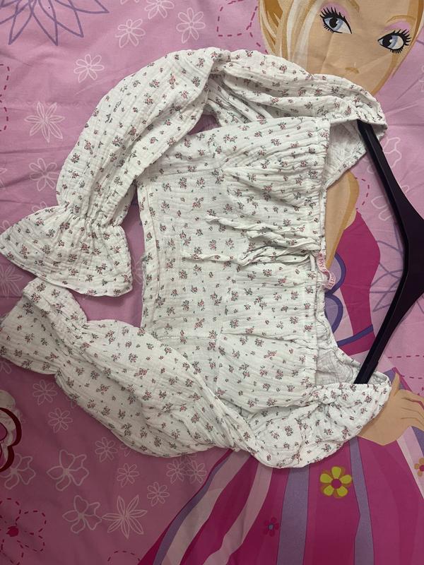 Топ с длинным , пышным рукавом Спереди на груди завязывается Очень хорошо тянется